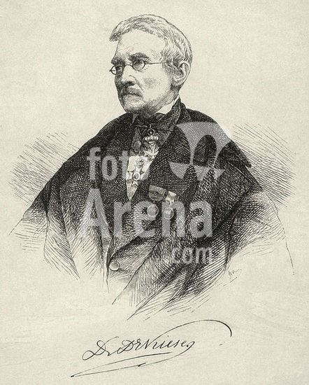 akg5596318 Kieser, Dietrich Georg; German physician, natural philosopher. 24.8.1779 Harburg / Elbe - 11.10.1862 Jena. - Portrait "Geheimer Hofrath Prof. (...), President of the Imperial Leopoldino-Carolingian Academy of Naturalists" (with facsimile signature). - Wood engraving, c. 1860, after a photograph by J. Schnauß. Berlin, Sammlung Archiv für Kunst und Geschichte. Museum: Berlin, Sammlung Archiv für Kunst und Geschichte.