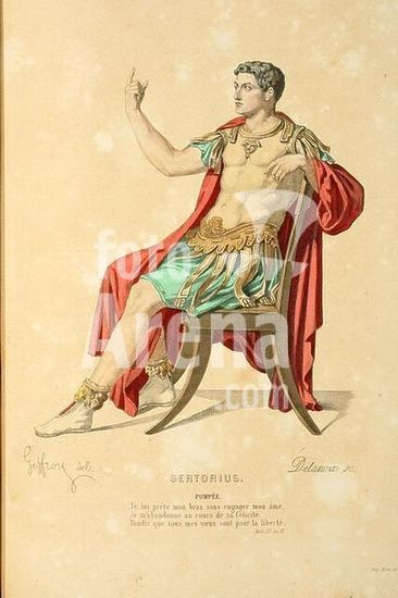 akg572856 Corneille, Pierre ; auteur dramatique français ; 1606-1684. Oeuvre : Sertorius (tragédie, 1662). "POMPÉE. Je lui prête mon bras sans engager mon âme (..) " (acte 3, scène 2). Gravure sur cuivre, coloriée, de Delanoix d'Ap. dessin de Edmond A.F.Geffroy (1804-1895). In : Oeuvres de P.Corneille, Paris (Laplace, Sanchez et Cie) 1877, n°12. Collection particulière. Museum: PRIVATE COLLECTION.