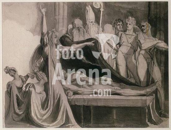 akg579892 Fueüssli, Johann Heinrich. 1741-1825. "Kriemhild accuses Gunther and Hagen of murder as she stands next to Siegfried's corpse in the Worms Cathedral", 1805. (Nibelungenlied XVII, 152-180). Brush and ink over pencil, 365 × 470 mm. Inv. No. 1914/40. Zurich, Kunsthaus. Museum: Zürich, Kunsthaus. Author: THE YOUNGER JOHANN HEINRICH FUESSLI.