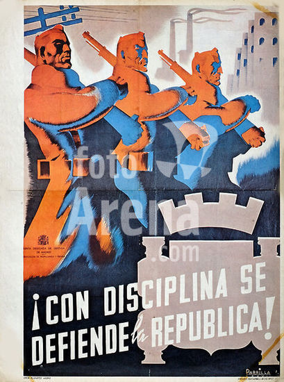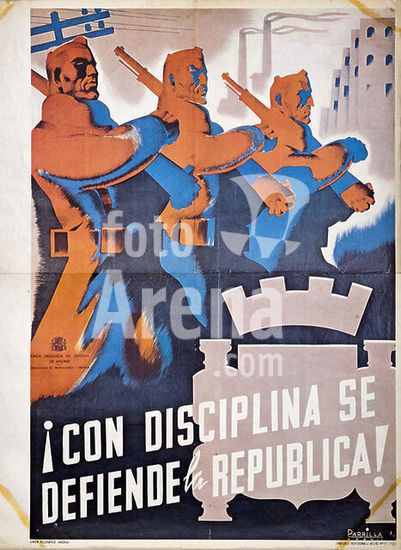 akg6153466 HISTOIRE / SECONDE GUERRE MONDIALE / 1939 - 1945AFFICHE (1937) - ESPAGNE - PARRILLA - Affiche de propagande espagnole " Junta Delegada de Defensa de Madrid - Delegacion de Propaganda y Prensa " Union Polierafica, Madrid".Collection particulière.