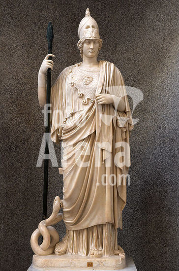 akg5953080 Statue of Athena Giustinianigoddess of wisdom, handicraft, and war. Roman copy of Antonine era (2nd cent AD) of a Greek 4th cent. BC original.inv. 2223Vatican Museums (Chiaramonti Museum - Braccio Nuovo - New Wing).