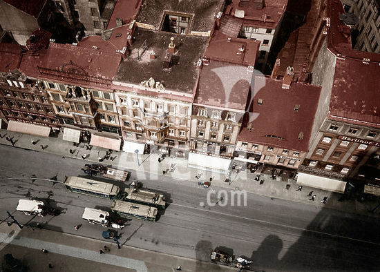 akg6445514 Germany, Berlin, Königstraße (now Rathausstraße). View from the tower of Rotes Rathaus (Red City Hall). Photo, 1910 (Haeckel Brothers), digital koloriert.