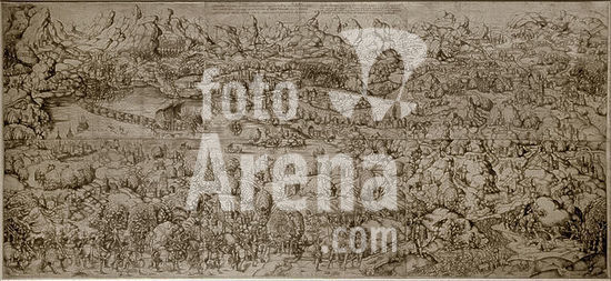 akg7421407 Swiss or Swabian War 1499 (War of the Swiss Confederation against Austria and the Swabian Alliance). - "The Swiss War", around 1500. - (Panorama of the Lake of Konstanz with the battle scenes of the war). Copper engraving of 6 plates, by Master PW (active late 15th/early 16th century), 51.3 × 112.0 cm. Inv.no. K 162, K 12121-12125, Kapsel 88a; Nuremberg, German National Museum. Author: MEISTER P W.