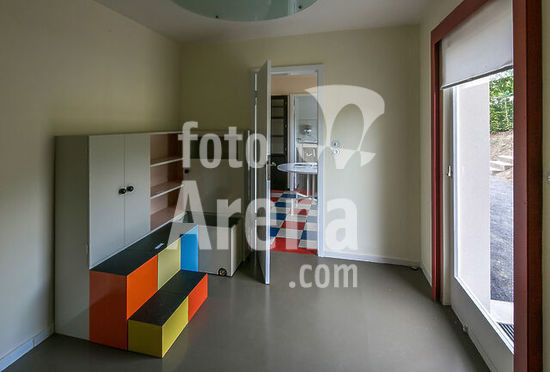 akg7858416 Weimar Haus am Horn 8943 Musterhaus 1923 nach Entwurf von Georg Muche erbaut Kinderzimmermöbel von Alma Buscher hinten Durchblick zur Küche.