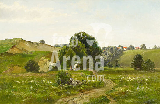 akg7866887 HALBERG-KRAUSS, FRITZ1874 Stadtprozelten - 1951 PrienSommerliche Hügellandschaft. Öl auf Leinwand. Doubliert. 65 x 100cm. Unten rechts: F. Halberg-Krauss / München 1917. Rahmen. Copyright: Additional copyrights must be cleared.