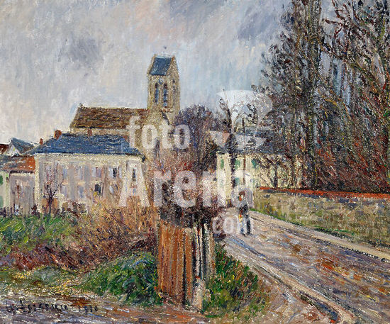 akg7895391 LOISEAU, GUSTAVEParis 1865 - 1935L'eglise d'Auvers-sur-Oise, temps gris. Oil on canvas. 50,5 x 61,5 cm. Signed and dated lower left: G. Loiseau 1910. Framed. Provenance: - Private collection, Paris - Hammer Galleries, New York with enclosed authentication from the gallery dated July 10, 1985. Certificate:Didier Imbert, Paris dated July 10, 1985, is to be enclosed into the catalogue raisonné in progress.Influenced by the style of his friend Paul Gauguin, Gustave Loiseau belonged to the second generation of impressionists. In 1901 the gallery owner Durand-Ruel, who had already signed him on in 1897, aligned a large solo exhibition for him. With the sole purpose to depict nature as honest as possible he developed an own impressionistic style which is characteristed by vivid, dynamic colour application.Just like Cézanne, Pissarro and van Gogh he is magically attracted time and time again by the rural Auvers. There he often visits his friend Dr. Gachet. In his painting of the church of Auvers-sur-Oise Loiseau he masterly depicts an everyday scene on a cloudy summer day. Loyal to his restrained nature he captures the unspectacular life off the metropolis in muted colours. Special-Edition-Catalogue_Collection_Stinner Text-Special-Edition-Catalogue_Collection_Stinner. Art trade, Van Ham.