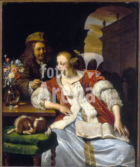 akg7906161 Mieris, Frans van (called the Elder), 1635-1681. "The interrupted song: portrait of the artist and his wife", 1671. Painting, oil painting. PDUT915, Paris, Petit Palais. Author: FRANS VAN MIERIS DER ÄLTERE.