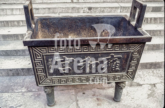 akg8223059 Beijing, China. Yonghe Temple / Yonghegong, so-called Lama Temple. (Lamaist Temple, Qing Dynasty, built in 1744 under Emperor Qianlong). - Incense burner. - Photo, undated.