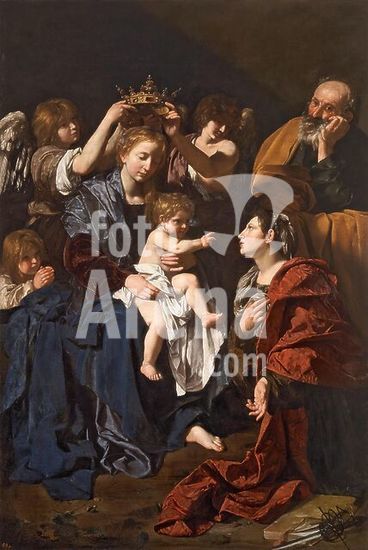alb2068158 Bartolomeo Cavarozzi / 'The Holy Family with Santa Catalina', 1617-1619, Italian School, Oil on canvas, 256 cm x 170 cm, P00146. Museum: MUSEO DEL PRADO, MADRID, SPAIN. SAINT JOSEPH. JESUS. INFANT JESUS. VIRGIN MARY. SANTA CATALINA.