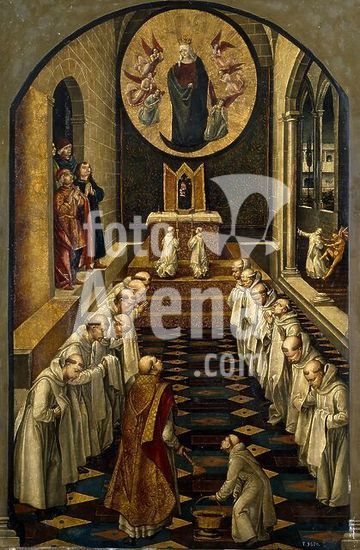 alb2068417 Pedro Berruguete / 'Apparition of the Virgin to the Dominican Monastic', 1493-1499, Spanish School, Oil on panel, 130 cm x 86 cm, P00615. Museum: MUSEO DEL PRADO, MADRID, SPAIN.