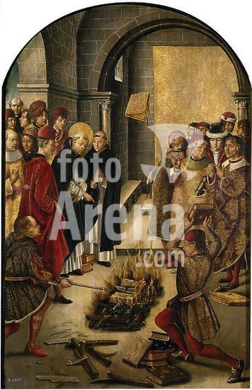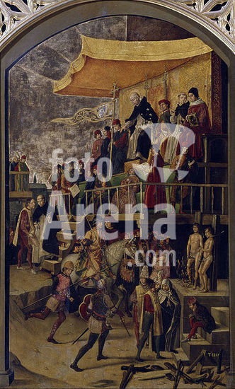 alb2070175 Pedro Berruguete / 'Saint Dominic Guzmán presiding over an Auto-da-fe', 1493-1499, Spanish School, Oil on panel, 154 cm x 92 cm, P00618. Museum: MUSEO DEL PRADO, MADRID, SPAIN.