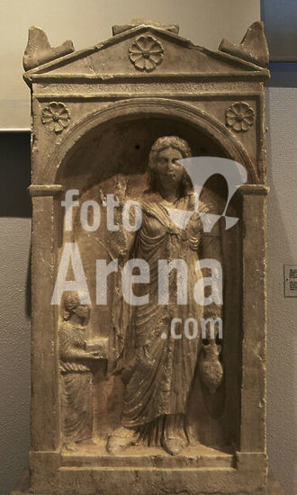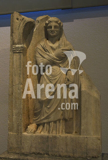 alb21097456 Ancient Greece. Funerary stele of an unknown woman, of the late 1st or the early 2nd century AD. Archaeological Museum of Piraeus. Greece.