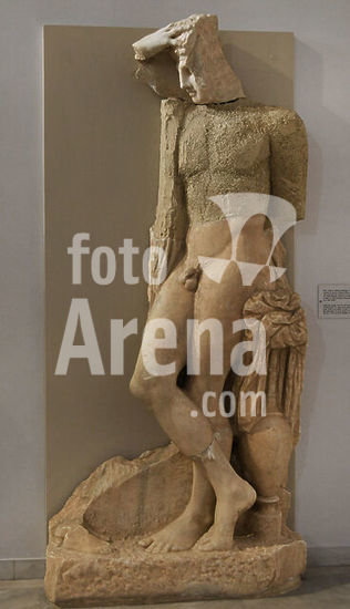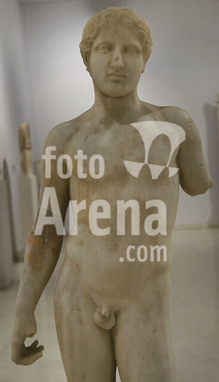 alb21097441 Ancient Greece. Funerary statue of a young athlete. Marble. Ca. 400 BCE. Detail. Archaeological Museum of Piraeus. Greece.