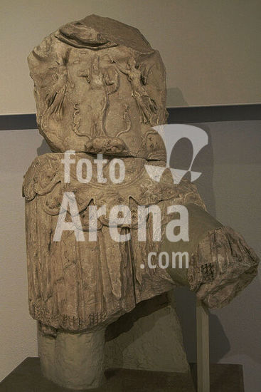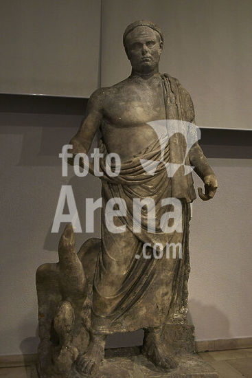 alb21097449 Balbinus (Decimus Caelius Calvinus Balbinus) (ca. 178-238 AD). Roman emperor (April to July 238). Larger tan life statue of the emperor Balbinus. Beside him an eagle, the Emperor's emblem. Archaeological Museum of Piraeus. Greece.