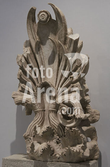 alb21097459 Ancient Greece. Anthemion from a funerary stele. Dated to the mid-4th century BC. From the north cemetery of Piraeus. Archaeological Museum of Piraeus. Greece.