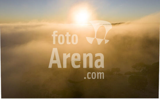 alb22608511 Cala Pi tower enveloped by the fog, 1663 Llucmajor, Mallorca, Balearic Islands, Spain.