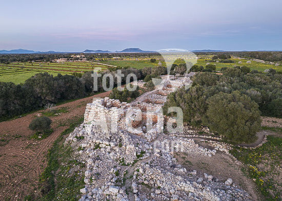 alb22608512 Son Fornés aerial view, archaeological site from the prehistoric era (10th century BC), Montuiri, Mallorca, Balearic Islands, Spain.