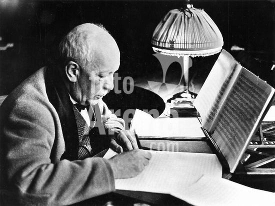 alb346376 German Composer Richard Strauss(1864-1949), seated, working on a music manuscript. Known for his operas:: Salome, elektra and Der Rosenkavalier.