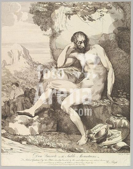 alb3610967 Don Quixote in the Sable Mountains. Artist: After John Hamilton Mortimer (British, Eastbourne 1740-1779 London). Artist and engraver: Etched and published by Robert Blyth (British, ca. 1750-1784). Dimensions: Sheet: 17 3/8 x 13 11/16 in. (44.1 x 34.7 cm). Subject: Miguel de Cervantes Saavedra (Spanish, Alcalá 1547-1616 Madrid). Date: October 20, 1782. Museum: Metropolitan Museum of Art, New York, USA.