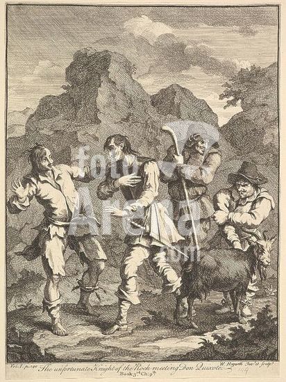 alb3614247 Don Quixote and the Knight of the Rock (Six Illustrations for Don Quixote). Artist: William Hogarth (British, London 1697-1764 London). Author: Illustrates Miguel de Cervantes Saavedra (Spanish, Alcalá 1547-1616 Madrid). Dimensions: Sheet: 9 7/16 x 7 in. (24 x 17.8 cm). Date: 1756 or after. Museum: Metropolitan Museum of Art, New York, USA.