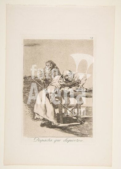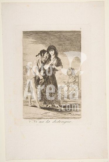 alb3657806 Plate 7 from 'Los Caprichos': Even thus he cannot make her out (Ni asi la distingue.). Artist: Goya (Francisco de Goya y Lucientes) (Spanish, Fuendetodos 1746-1828 Bordeaux). Dimensions: Plate: 7 3/4 x 5 13/16 in. (19.7 x 14.8 cm)Sheet: 12 1/8 x 7 7/8 in. (30.8 x 20 cm). Series/Portfolio: Los Caprichos. Date: 1799. Museum: Metropolitan Museum of Art, New York, USA.
