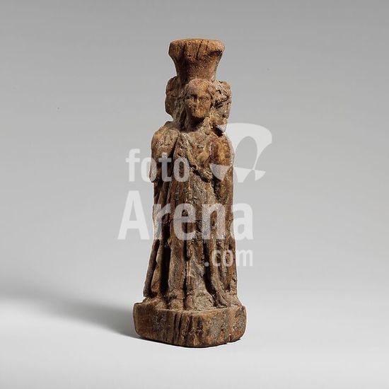 alb3680923 Cubiculum (bedroom) from the Villa of P. Fannius Synistor at Boscoreale. Culture: Roman. Dimensions: Room: 8 ft. 8 1/2 in. x 10 ft. 11 1/2 in. x 19 ft. 7 1/8 in. (265.4 x 334 x 583.9 cm). Date: ca. 50-40 B.C..Room M of the Villa of P. Fannius Synistor at Boscoreale, buried by the eruption of Vesuvius in A.D. 79, functioned as a bedroom. The rear wall shows rocky terrain with balustrades and an arbor above, a small cave or grotto sheltering a fountain, and a small figure of Hekate below. In the center of the wall, between two columns, a parapet embellished with a yellow monochrome landscape supports a glass bowl filled with fruit.The side walls of the room are symmetrical. Each wall is subdivided into four sections by a pilaster that defines the area of the couch and by two ornate columns. The paintings depict enclosed courtyards in which we glimpse the tops of statuary, rotundas, and pylons as well as vegetation. These precincts alternate with townscapes combining colonnaded buildings and projecting terraces. Museum: Metropolitan Museum of Art, New York, USA.