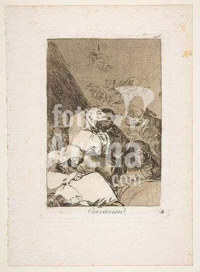alb3673773 Plate 46 from ' Los Caprichos': Correction (Correccion.). Artist: Goya (Francisco de Goya y Lucientes) (Spanish, Fuendetodos 1746-1828 Bordeaux). Dimensions: Plate: 8 3/8 x 5 13/16 in. (21.3 x 14.7 cm)Sheet: 11 5/8 x 8 1/4 in. (29.5 x 21 cm). Series/Portfolio: Los Caprichos. Date: 1799. Museum: Metropolitan Museum of Art, New York, USA.