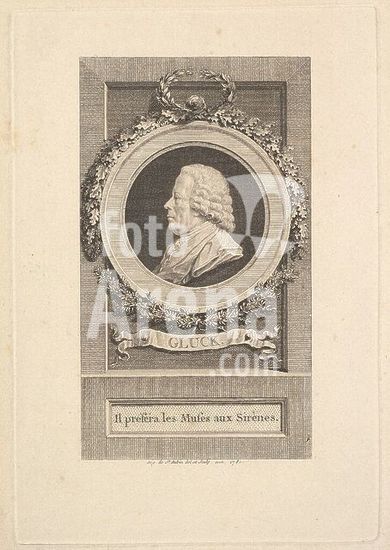 alb3676640 Portrait of Gluck. Artist: Augustin de Saint-Aubin (French, Paris 1736-1807 Paris). Dimensions: Sheet: 9 1/16 × 6 1/8 in. (23 × 15.6 cm)Plate: 7 1/4 × 4 15/16 in. (18.4 × 12.6 cm). Date: 1781. Museum: Metropolitan Museum of Art, New York, USA.
