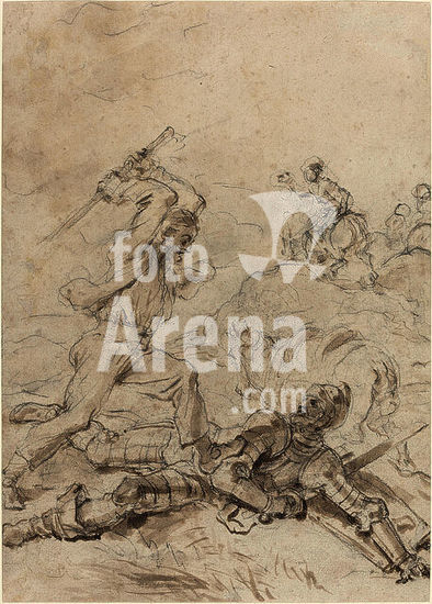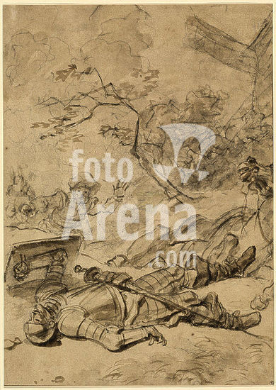 alb3707756 The Muleteer Attacking Don Quixote as He Lies Helpless on the Ground. Dated: 1780s. Dimensions: overall: 39.7 x 28.3 cm (15 5/8 x 11 1/8 in.). Medium: brush with brown and gray washes over black chalk on laid paper. Museum: National Gallery of Art, Washington DC. Author: JEAN-HONORE FRAGONARD.