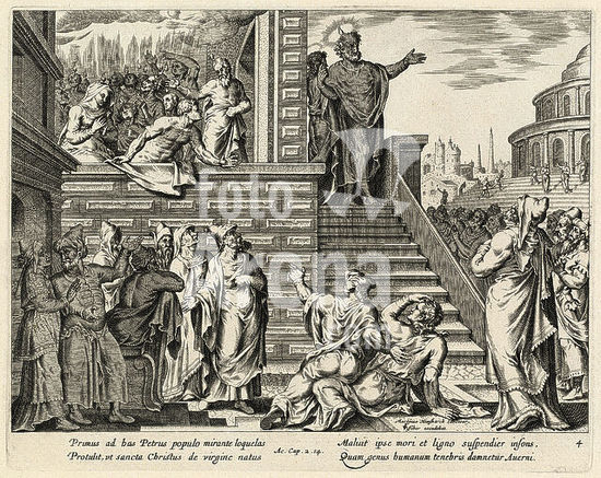 alb3710722 Saint Peter Speaks to the People about Christ. Medium: engraving. Museum: National Gallery of Art, Washington DC. Author: Philip Galle after Maerten van Heemskerck.