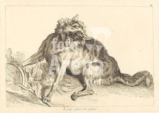 alb3742870 Loup pris au piege (Wolf Caught in a Trap). Medium: etching finished with burin. Museum: National Gallery of Art, Washington DC. Author: Jacques-Philippe Le Bas and Jean Eric Rehn after Jean-Baptiste Oudry.