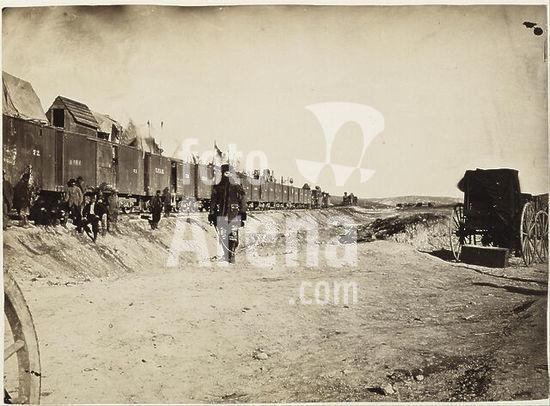 alb3630314 End of the Bridge after Burnside's Attack, Fredericksburg, Virginia. Artist: Andrew Joseph Russell (American, 1830-1902). Dimensions: Image: 13.1 × 20.6 cm (5 3/16 × 8 1/8 in.). Former Attribution: Formerly attributed to Mathew B. Brady (American, born Ireland, 1823?-1896 New York). Date: 1863.Likely made in April 1863 during a truce just before the Battle of Chancellorsville, this view from the buttress of a ruined railroad bridge spanning the Rappahannock River at Fredericksburg documents a small group of Confederate soldiers and civilians. They stare across the divide at their fellow combatants and pose for the camera. Russell's long focal-length lens compressed foreground and background elements, suggesting that the two sides were actually closer than they were. It is the only known landscape view or portrait by a Union photographer showing the enemy neither dead, incarcerated, or under visible military control. Museum: Metropolitan Museum of Art, New York, USA.