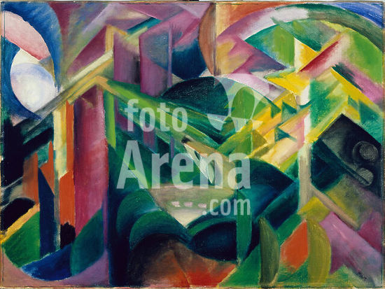 alb3638186 Returning to the Trenches. Artist: Christopher Richard Wynne Nevinson (British, London 1889-1946 London). Dimensions: Plate: 6 in. × 8 1/16 in. (15.2 × 20.4 cm)Sheet: 8 3/8 in. × 11 in. (21.3 × 28 cm). Date: 1916.Unable to enlist in the British army for health reasons, Nevinson volunteered in fall 1914 for a Red Cross ambulance unit serving northern France and Belgium. Here, he conveys the dynamism of a seemingly impenetrable line of French soldiers, or poilus, whom?he probably encountered. Dressed in their distinctive uniform, they advance with purpose and determination, an effect amplified by the faceted forms that convey a sense of endless, repetitive movement. Individual features are minimized and further obscured by capes, hats, raised bayonets, and bladelike shields, while the broad, sweeping strokes that depict the men's lower bodies unify the group. Nevinson made a painting, drawings, and a woodcut of this image; the woodcut appeared in the war issue of the journal Blast. Museum: Metropolitan Museum of Art, New York, USA.