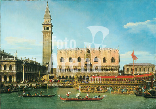alb3899132 The Bucintoro at the Molo on Ascension Day. Date/Period: Ca. 1745. Painting. Oil on canvas Oil on canvas. Height: 1,149.86 mm (45.27 in); Width: 1,626.87 mm (64.05 in). Author: CANALETTO.