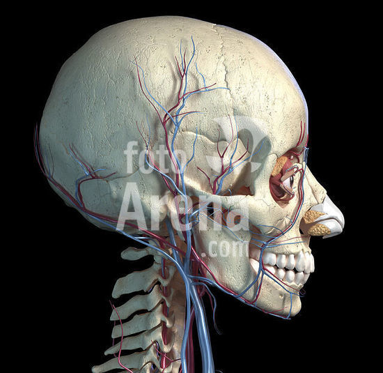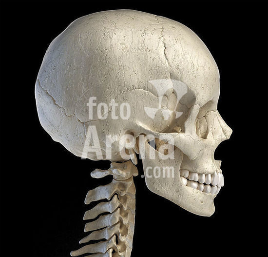 alb5567200 3D illustration of the human skull, lateral view on black background.