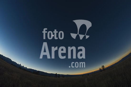 alb5567279 An ultra-wide angle view of the total eclipse sky from the Teton Valley, Idaho. The Tetons are at left, still partly in sunlight. The lunar shadow has approached from the west at right and its edge is just past the Sun, ending the diamond ring and starting totality. Venus is at upper right from the Sun. Sirius is a tiny speck at lower right, likely not visible in low-res views on social media. Procyon, Rigel, and Betelegeuse are faintly visible in the original image.