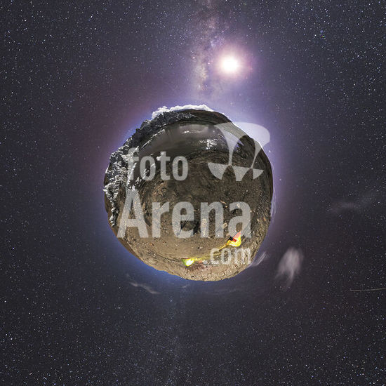 alb5567295 Planet Earth and moon in the Milky Way galaxy. The little planet effect is created by the view in the deep himalayas at Tibet, China.