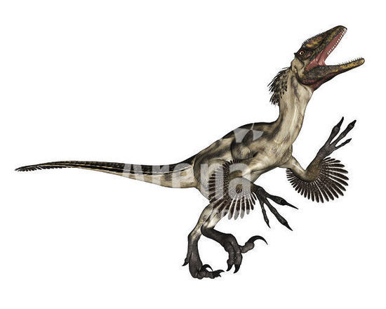 alb5567296 Deinonychus dinosaur roaring, isolated on white background.