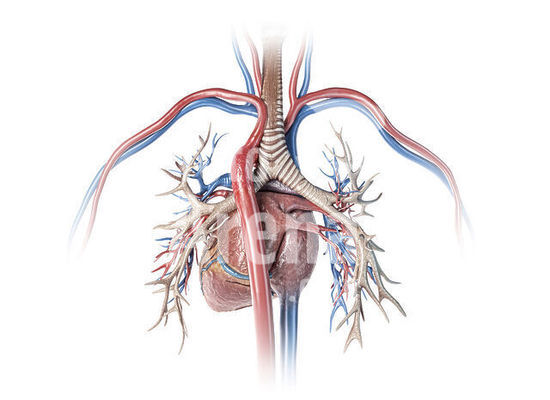 alb5568454 Human heart with vessels and bronchial tree close-up. Back view. Isolated on white background.