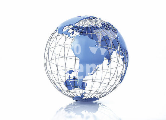 alb5568445 Stylized Earth globe, Asia view with grey continents and transparent seas to reveal continents on the other side.