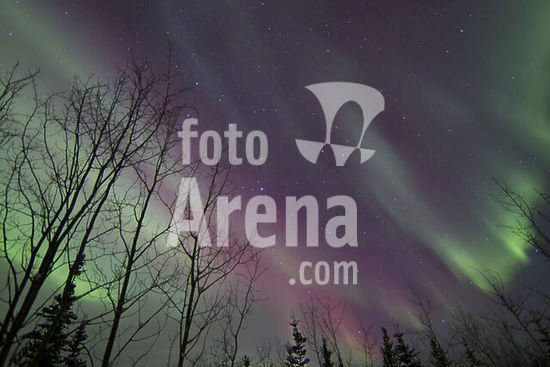 alb5568907 Aurora borealis with trees, Whitehorse, Yukon, Canada.