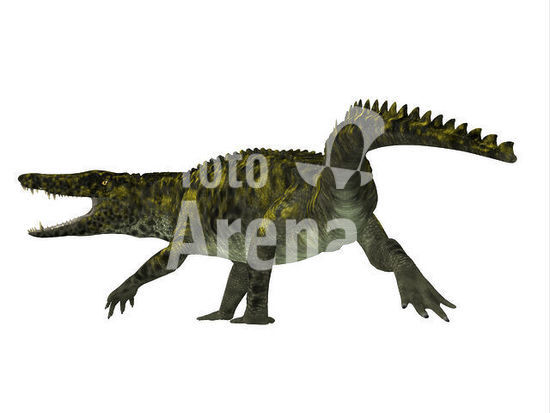 alb5568923 Uberabasuchus reptile on white background. Uberabasuchus was a carnivorous reptile crocodile that lived in Brazil during the Cretaceous Period.