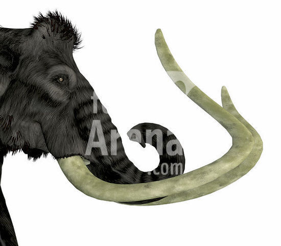 alb5568992 Woolly mammoth headshot. The woolly mammoth was a herbivorous elephant that lived in Asia, Siberia and North America during the Pliocene and Pleistocene Periods.