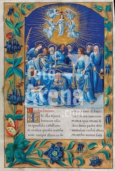 orz210245 MUERTE Y ASUNCION DE LA VIRGEN - EVANGELIARIO DE PARIS PARA USO DE CARLOS DUQUE DE ANGULEMA - FECHADO ENTRE 1501 Y 1600 - PERGAMINO. Location: BIBLIOTECA NACIONAL-COLECCION. MADRID. SPAIN.