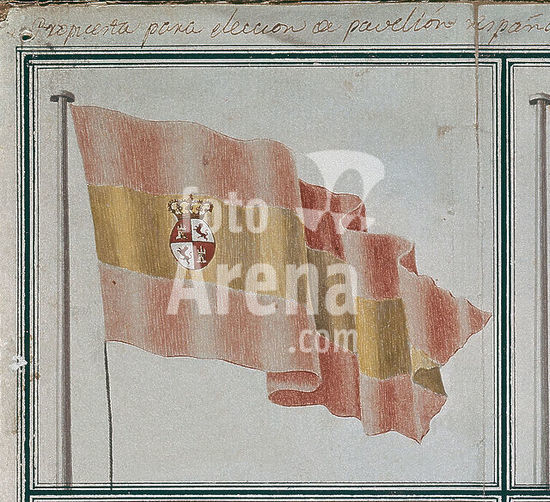 orz210863 DETALLE DE LA BANDERA ESPAÑOLA ELEGIDA POR EL REY CARLOS III - CONJUNTO Nº 49912. Location: MUSEO NAVAL / MINISTERIO DE MARINA. MADRID.