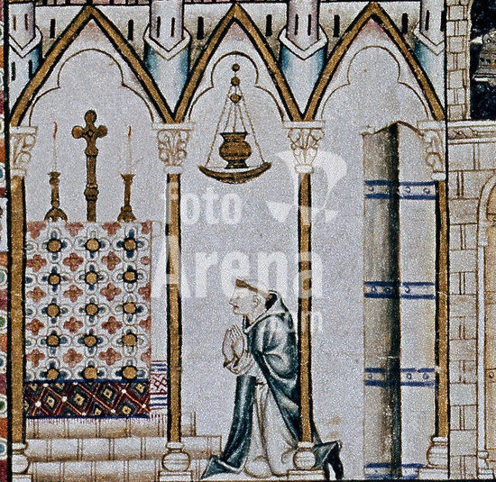 orz211300 DETALLE MTI1-CANTIGA STA MARIA Nº11-F19V- MONJE ORANDO A LA VIRGEN, MINIATURA S XIII, REF. ORIGINAL 016242. Author: ALFONSO X EL SABIO (1221-1284). Location: MONASTERIO-BIBLIOTECA-COLECCION. SAN LORENZO DEL ESCORIAL. MADRID. SPAIN.