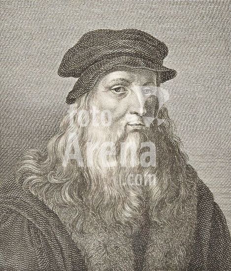 orz214945 PORTRAIT OF LEONARDO DA VINCI - ENGRAVING 19th CENTURY. Author: FRIEDRICH KNOLLE. Location: PRIVATE COLLECTION.
