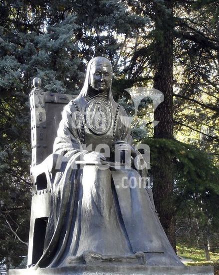 orz217128 ESTATUA DE SOR JUANA INES DE LA CRUZ EN LOS JARDINES DE FERRAZ EN PLENO PARQUE DEL OESTE. Location: PARQUE DEL OESTE. MADRID. SPAIN.