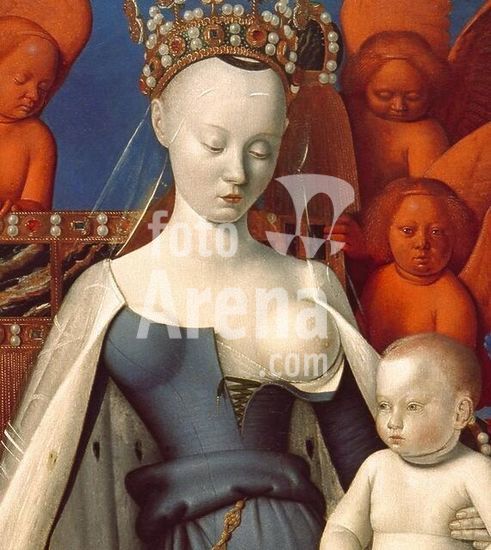 akg991310 Fouquet, Jean um 1415/20-1477/81. "Madonna mit Kind", um 1450. Linker Flügel des "Mel?n-Diptychons". Ausschnitt. Auf Holz, 91,3 x 83,3 cm. Inv.132.