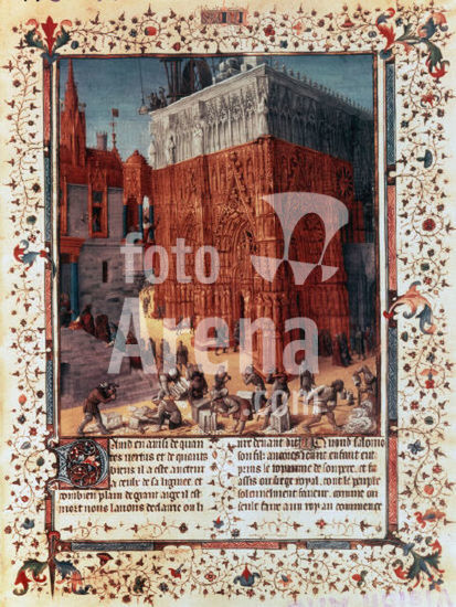 akg248784 Fouquet, Jean, c.1415/20-1477/81.-"The Building of the Temple of Solomon in Jerusalem".-Manuscript illumination. Illustration in Flavius Josephus "Les antiquités judaïques (Antiquitatum Iudaicarum)". Ms.fr.247, Nouv.acqu.21013,. Museum: Bibliothèque Nationale., Paris.